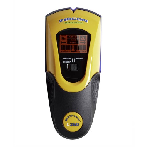 El detector de vigas multifunción MultiScanner™ L350 OneStep® ubica el centro, los bordes y la dirección de vigas y vigas de madera y metal detrás de paredes, pisos y techos. También localiza objetivos de metal de hasta 3 pulgadas (75 mm) de profundidad. Un interruptor de 3 modos facilita el cambio de modos, mientras que la pantalla ultra brillante, el puntero SpotLite® y el tono de audio indican la ubicación del objetivo. El indicador de intensidad de la señal ayuda a distinguir entre objetivos profundos y poco profundos.